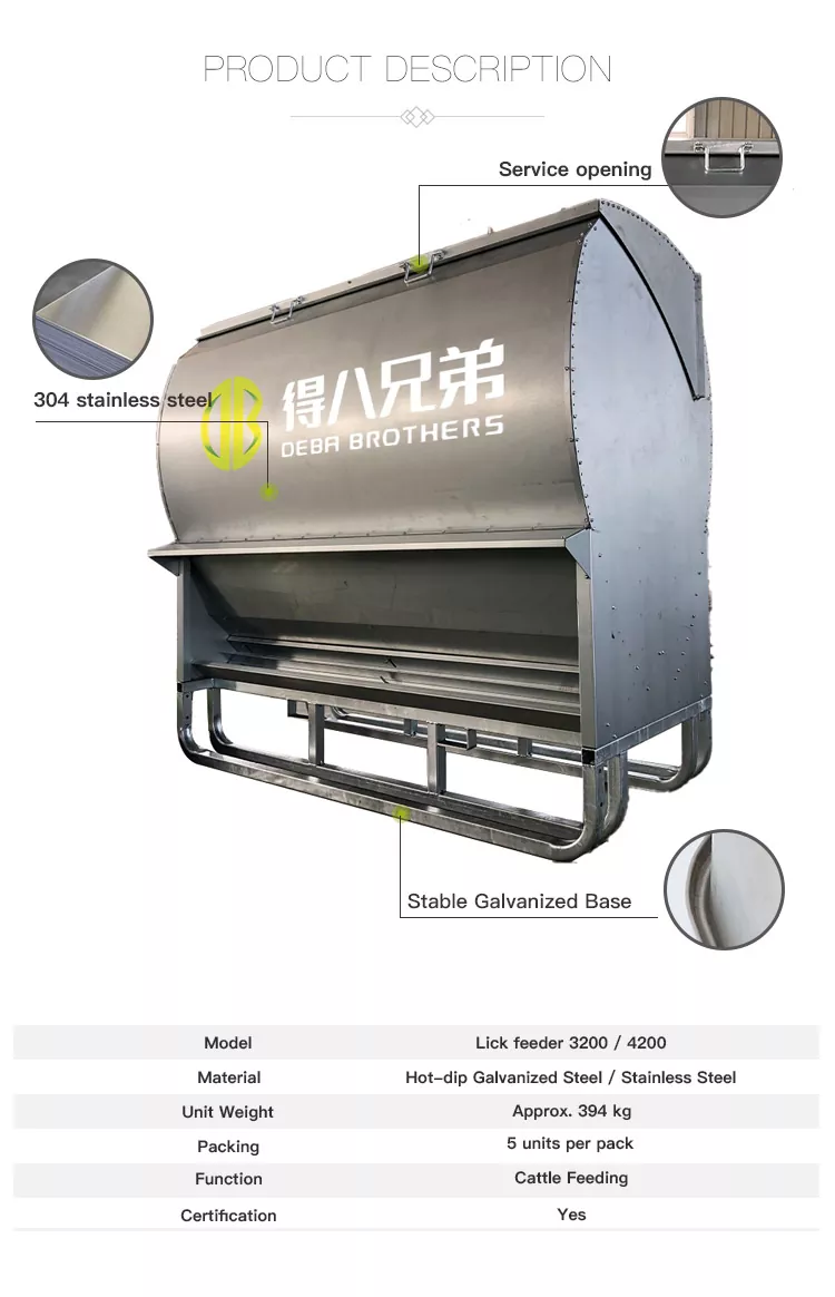 5. Diseño de soporte práctico: los puertos de acceso lateral facilitan la limpieza interna y el reemplazo de piezas; El embalaje modular con un kit de piezas pequeñas y cartón protector minimiza los daños durante el envío, y el diseño cumple con los estándares australianos de equipos ganaderos para operaciones agrícolas a gran escala.