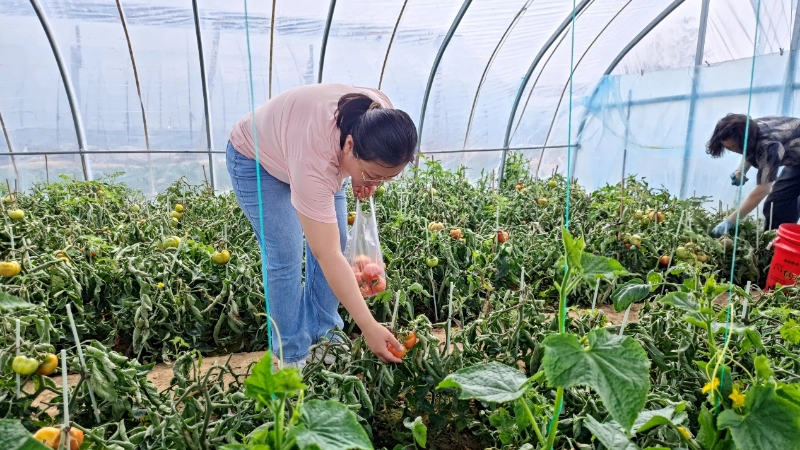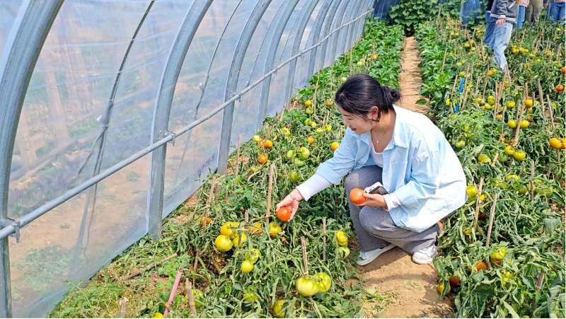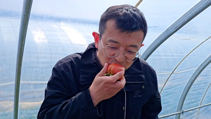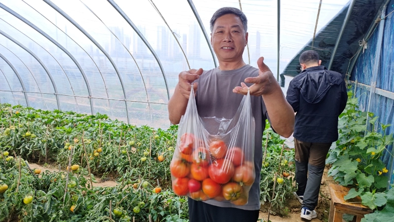 Como producto con indicación geográfica de Xiazhuang, el tomate 69 tiene una gran trayectoria: es una variedad de alta calidad seleccionada en los años 70. Crece al pie de la montaña Laoshan y junto al río Baisha. Al beneficiarse de suficiente luz solar y riego con agua de Laoshan rica en minerales, junto con el método de cultivo de maduración natural, tiene un sabor arenoso y glutinoso, dulzor y acidez moderados y jugo completo. Al morderlo, se llena del sabor de la infancia, del más puro dulzor natural. Los miembros de la familia recorrían el cobertizo de recolección, recogían con sus propias manos y al mismo tiempo degustaban este original manjar ecológico. Las risas resonaron en los campos. La alegría de cosechar con sus propias manos fue más sanadora de lo imaginado. Muchos miembros de la familia no pudieron evitar comprar una bolsa llena, queriendo llevarse esta dulzura de Xiazhuang a casa y compartir la alegría de este trabajo en equipo con sus familias.
